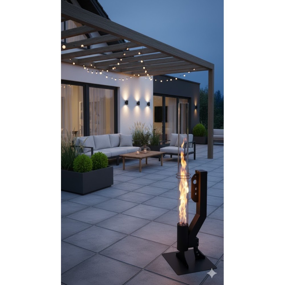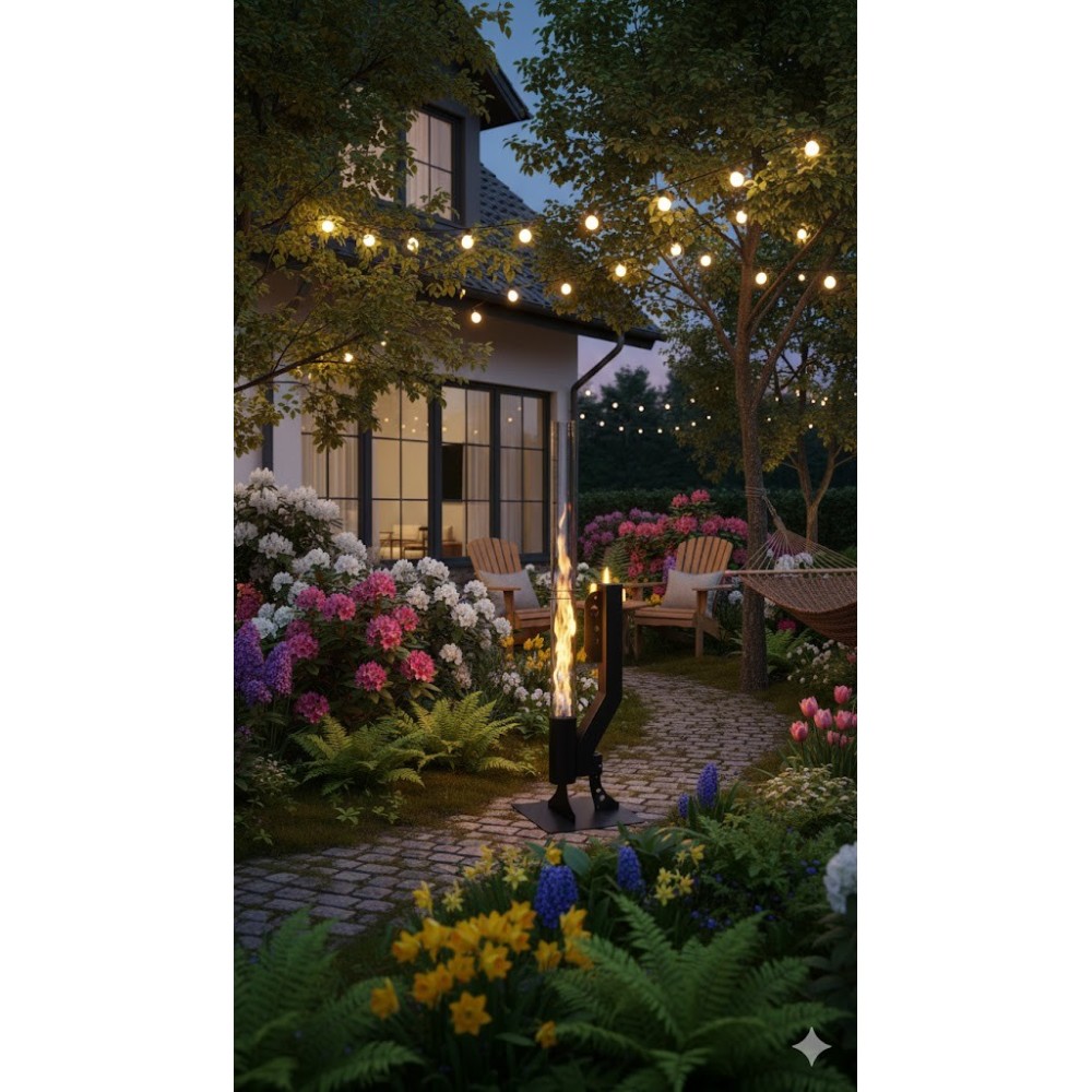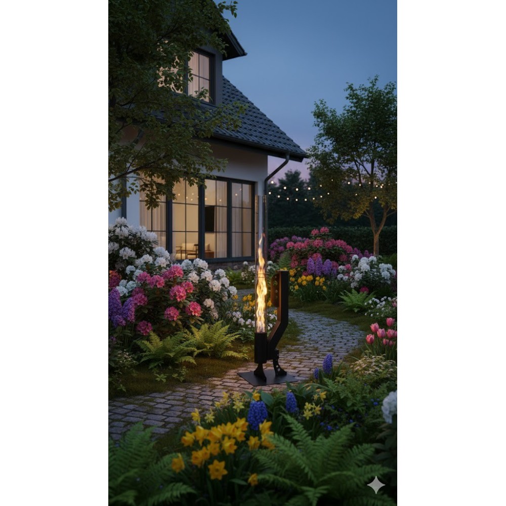 Piękna lampa ogrodowa z naturalnym ogniem dzięki spalaniu ekologicznego pelletu