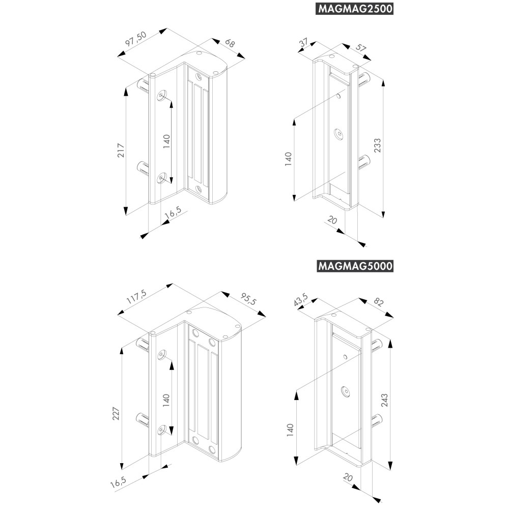 MAGMAG-5000 - Do montażu na profilach kwadratowych i furtek z profila od 40 mm do 80 mm, siła ciągu 500 kg